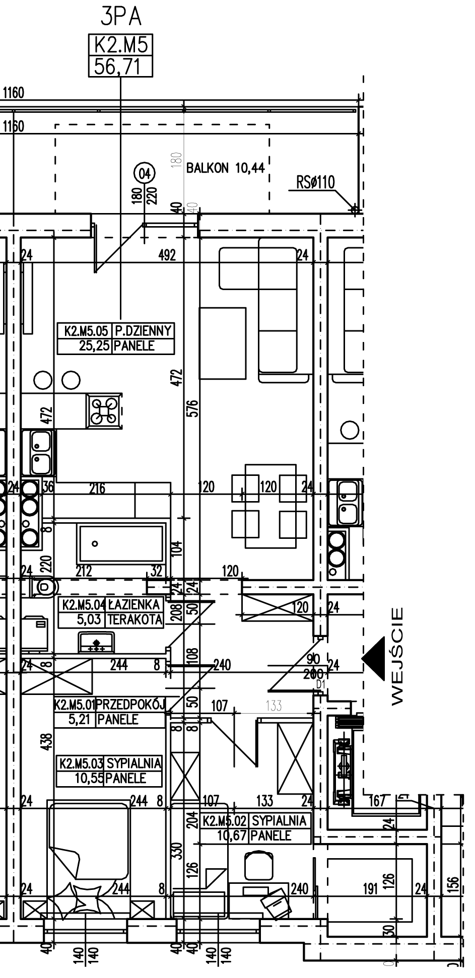 • Pow. mieszkania: 56,71 m2