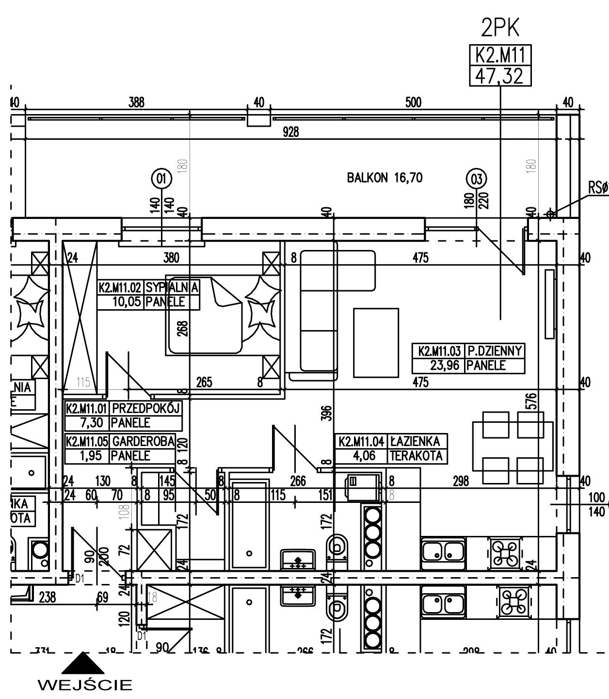 • Pow. mieszkania: 47,32 m2